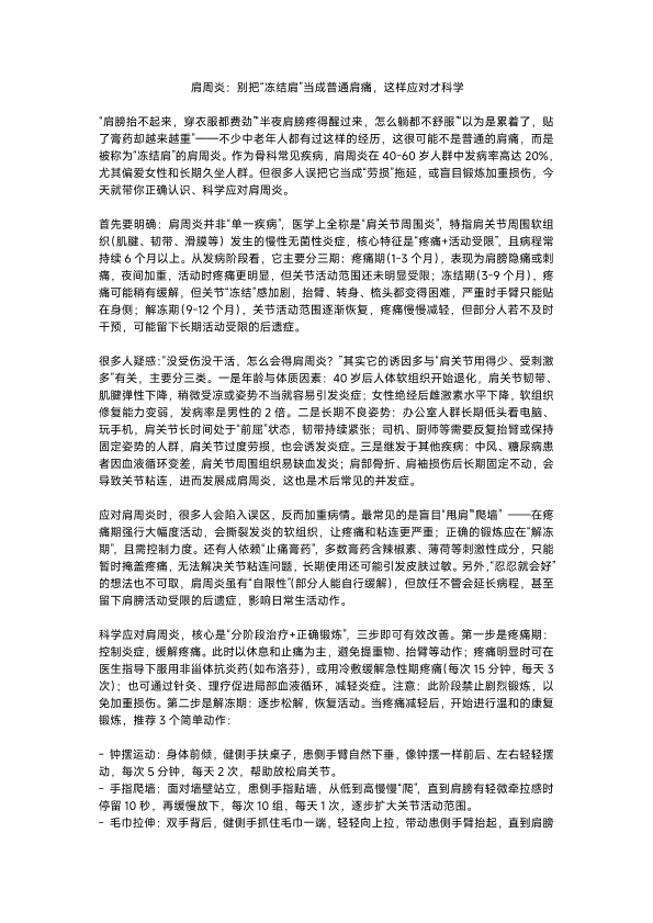 肩周炎:别把“冻结肩”当成普通肩痛,这样应对才科学