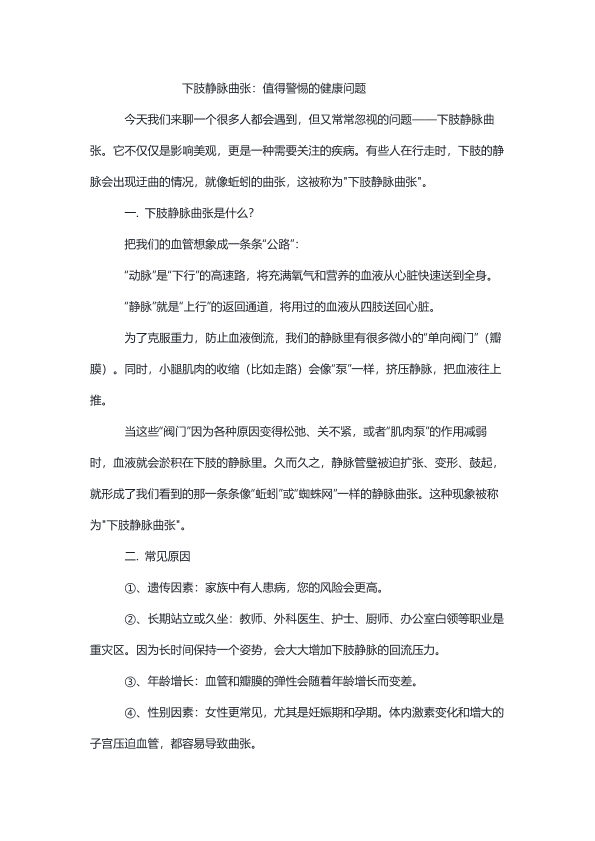 下肢静脉曲张:值得警惕的健康问题