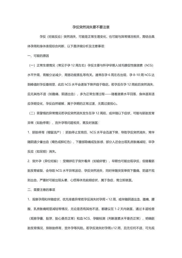 孕反突然消失要不要注意