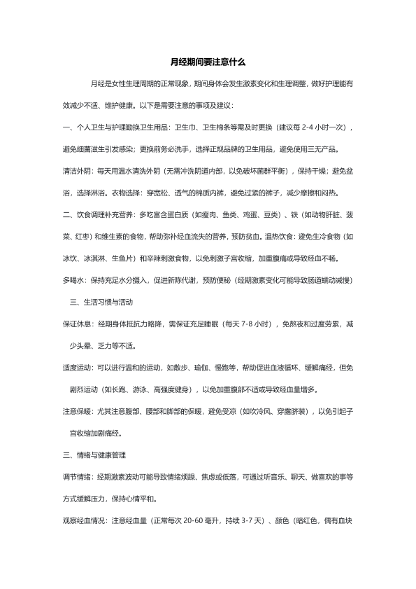 月经期间要注意什么