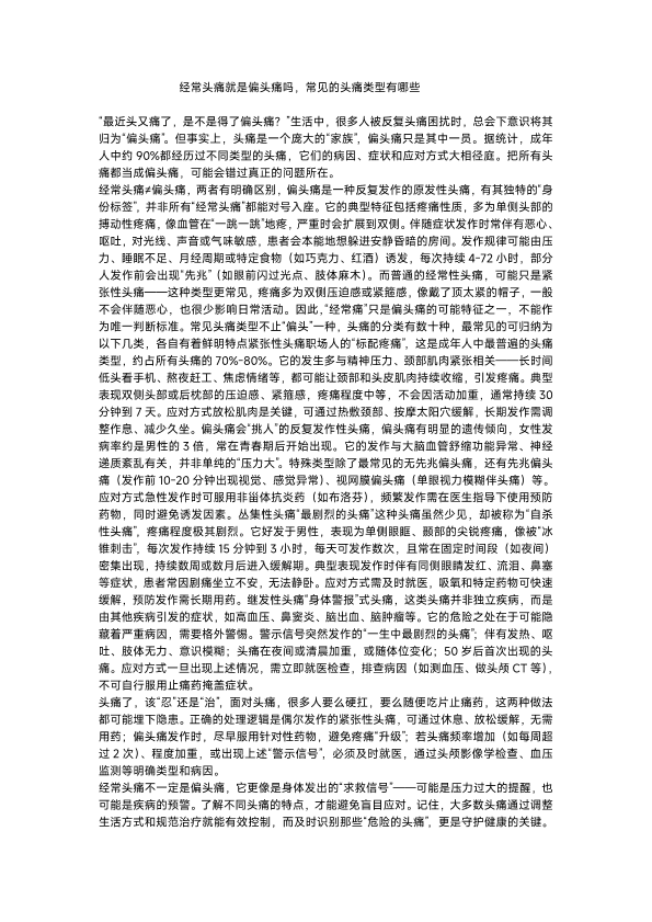 经常头痛就是偏头痛吗,常见的头痛类型有哪些