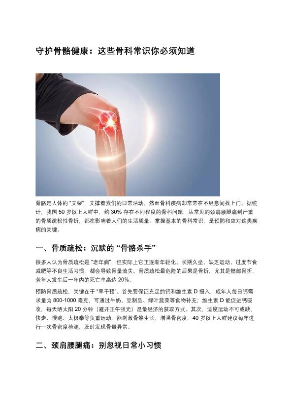 守护骨骼健康:这些骨科常识你必须知道