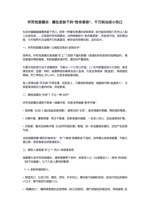 坏死性筋膜炎:藏在皮肤下的“致命感染”,千万别当成小伤口
