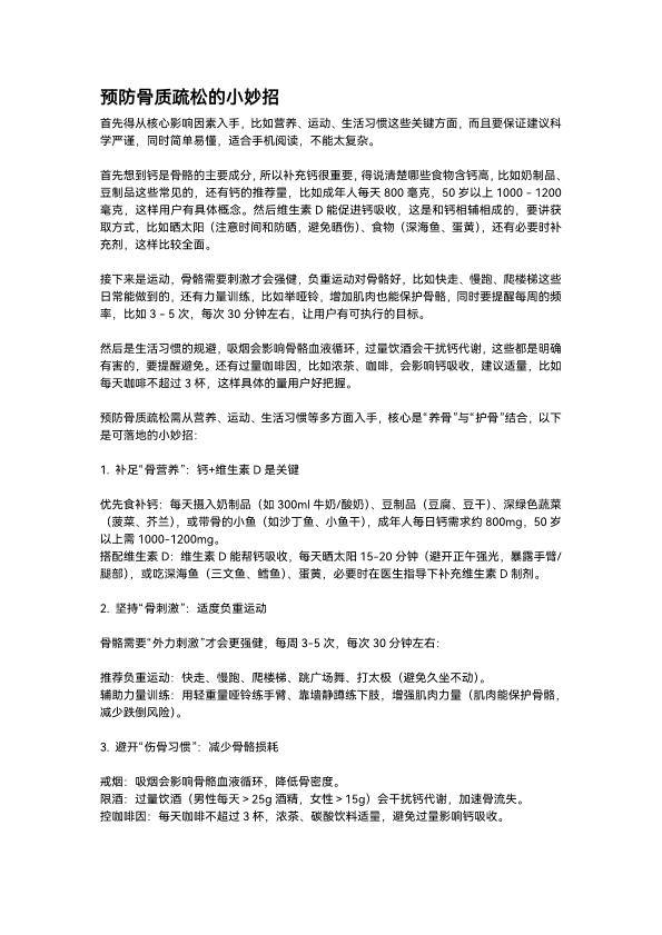 预防骨质疏松的小妙招