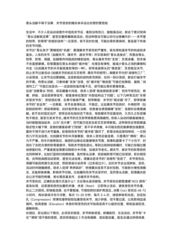 骨头没断不等于没事,关节受伤的阴影杀手比你想的更危险