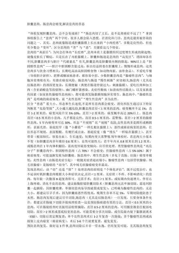 胆囊息肉、肠息肉会癌变,解读息肉的善恶