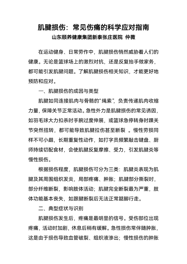 肌腱损伤:常见伤痛的科学应对指南