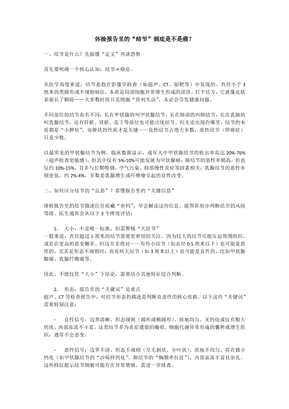 体检报告里的“结节”到底是不是癌?