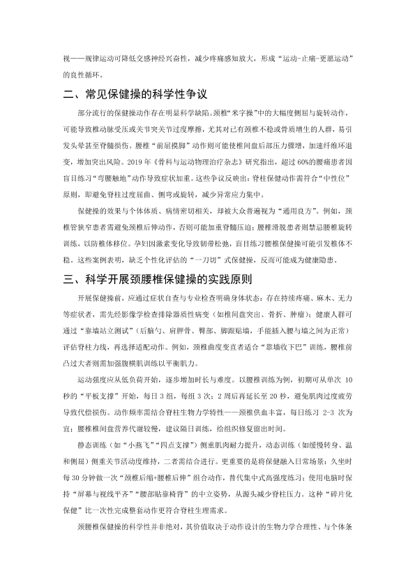 颈腰椎保健操的科学性评析