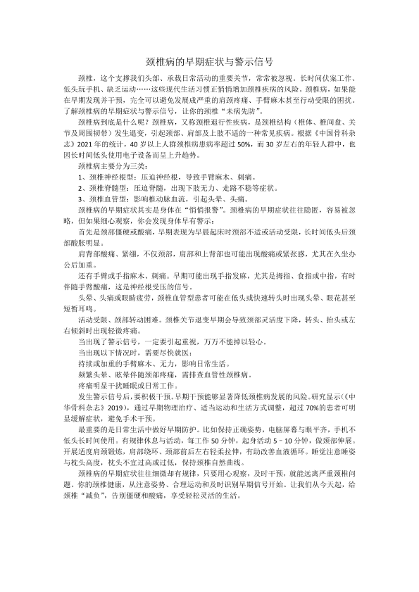 颈椎病的早期症状与警示信号