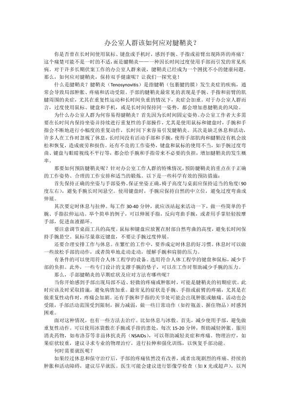 办公室人群该如何应对腱鞘炎