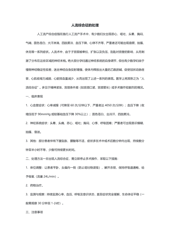 人流综合征的处理