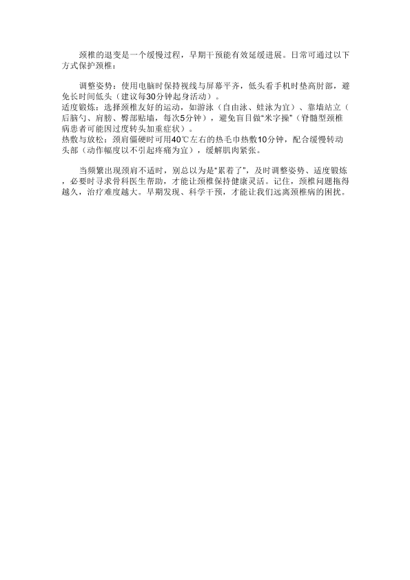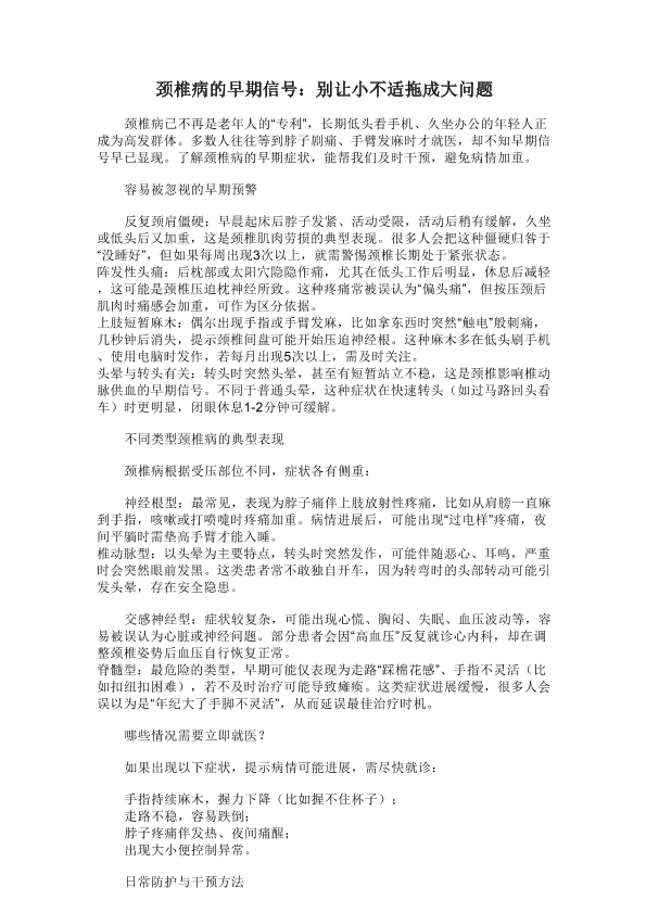 颈椎病的早期信号