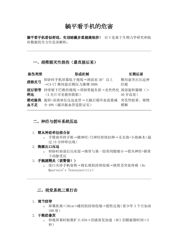 躺平看手机的危害