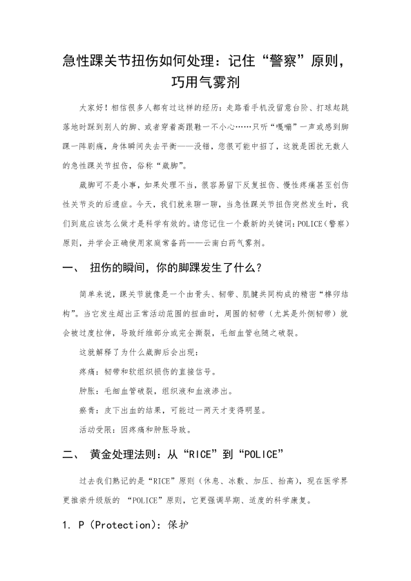 急性踝关节扭伤如何处理:记住“警察”原则,巧用气雾剂