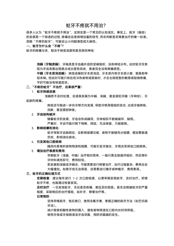 蛀牙不疼就不用治?