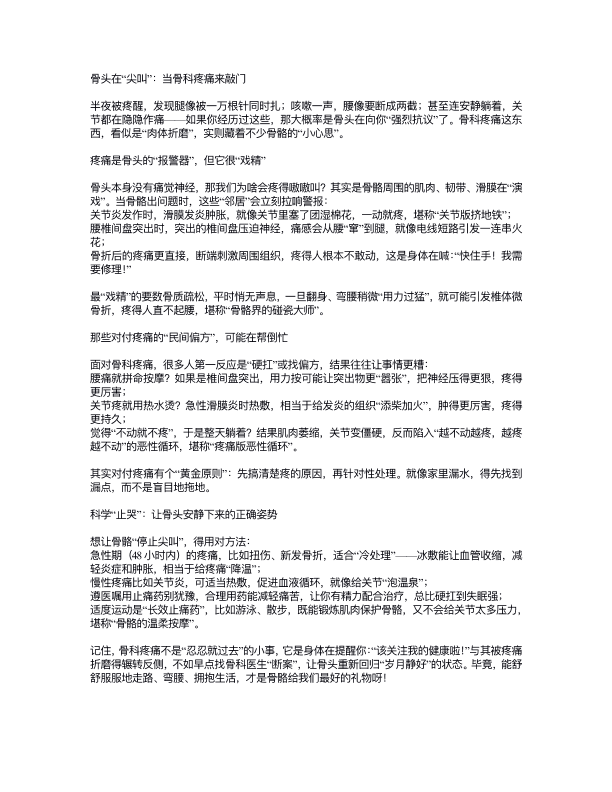 骨头在“尖叫”:当骨科疼痛来敲门