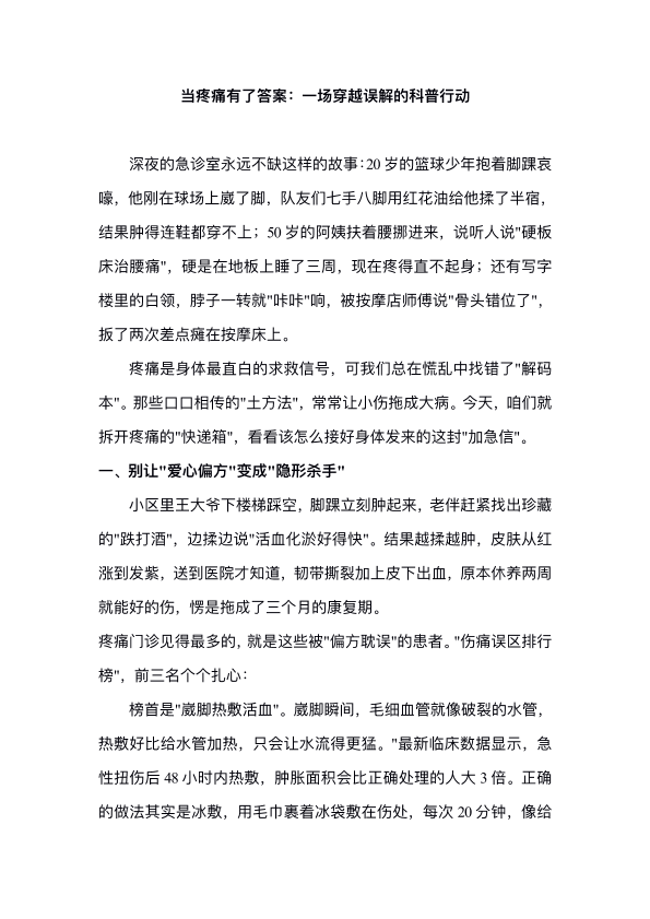 当疼痛有了答案:一场穿越误解的科普行动