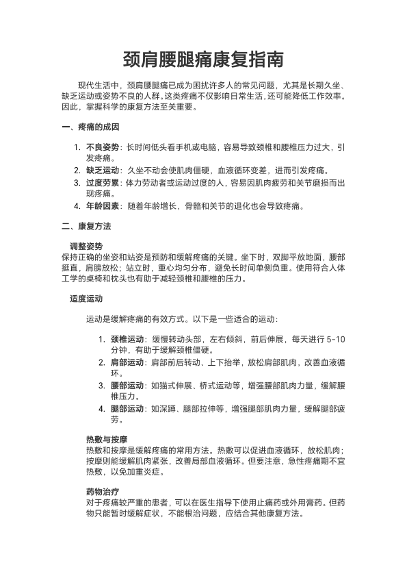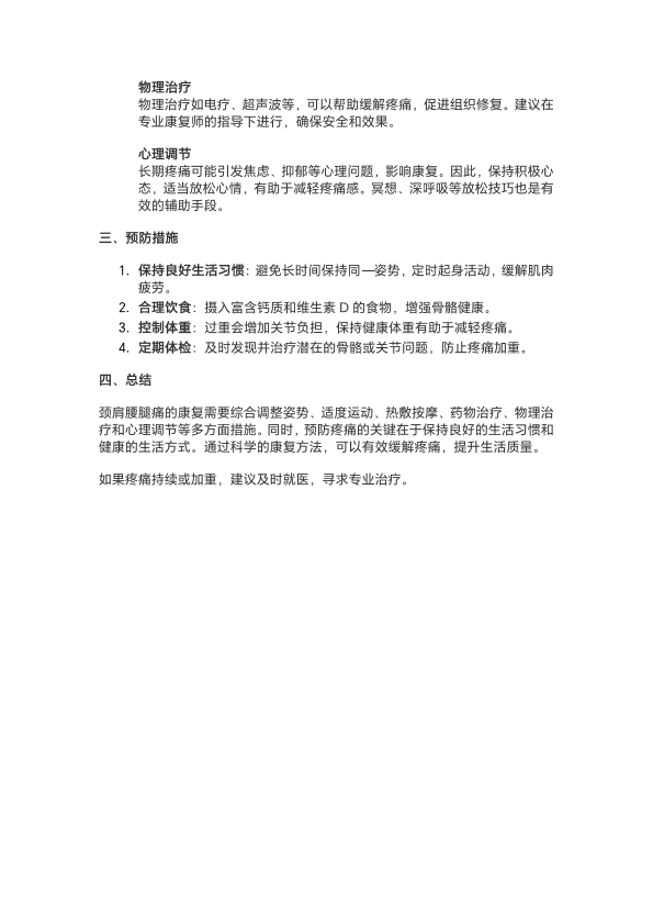 颈肩腰腿痛康复治疗