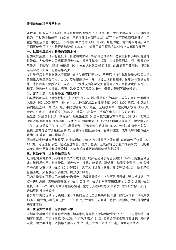 骨质疏松的科学预防指南