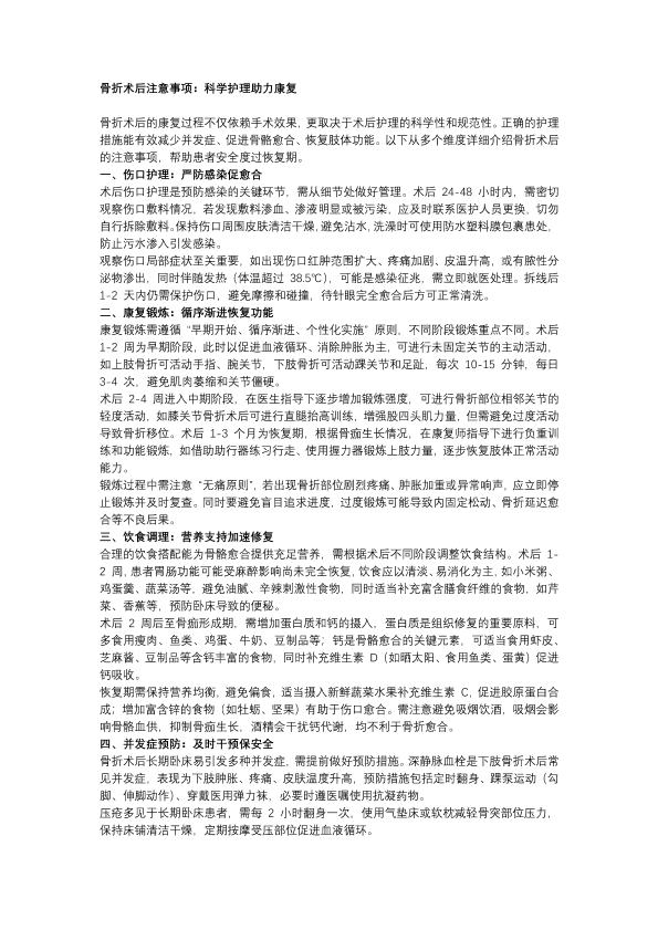 骨折术后注意事项:科学护理助力康复