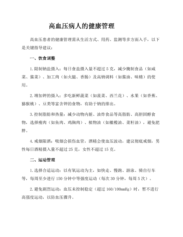 高血压病人的健康管理