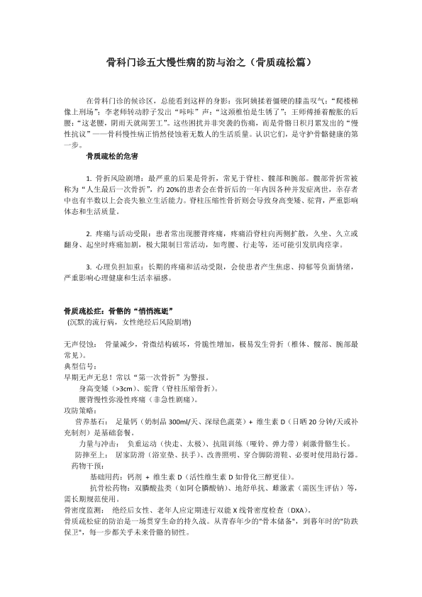 骨科门诊五大慢性病的防与治之骨质疏松篇