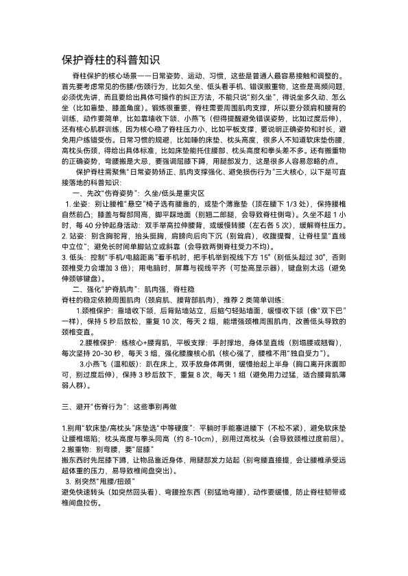 保护脊柱的科普知识