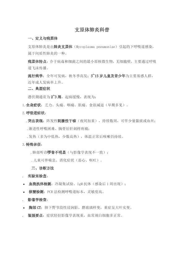 支原体肺炎科普