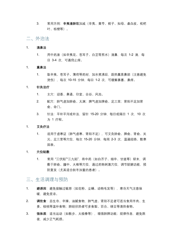 过敏性鼻炎的中医药治疗