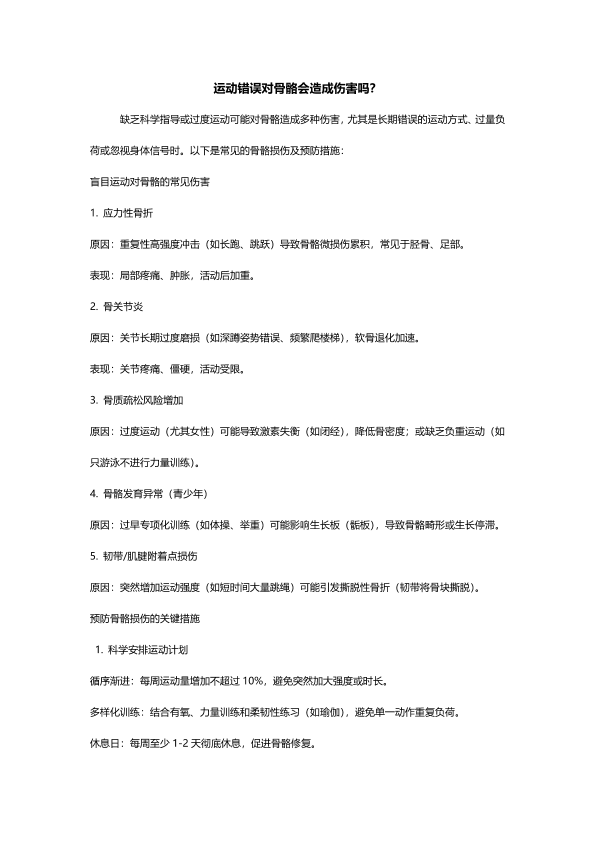 运动错误对骨骼会造成伤害吗?