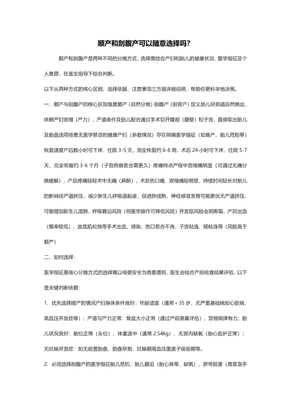 顺产和剖腹产可以随意选择吗?