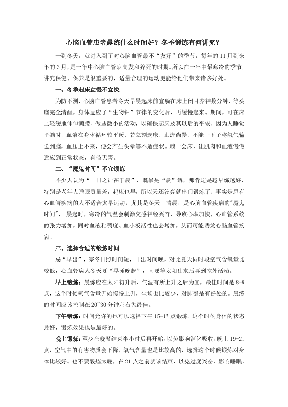 心脑血管患者晨练什么时间好?冬季锻炼有何讲究?
