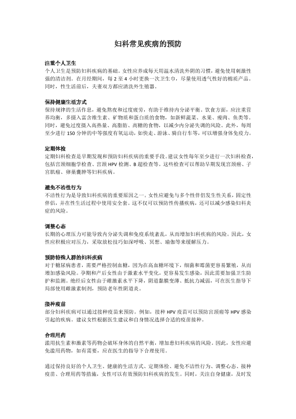 妇科常见疾病的预防