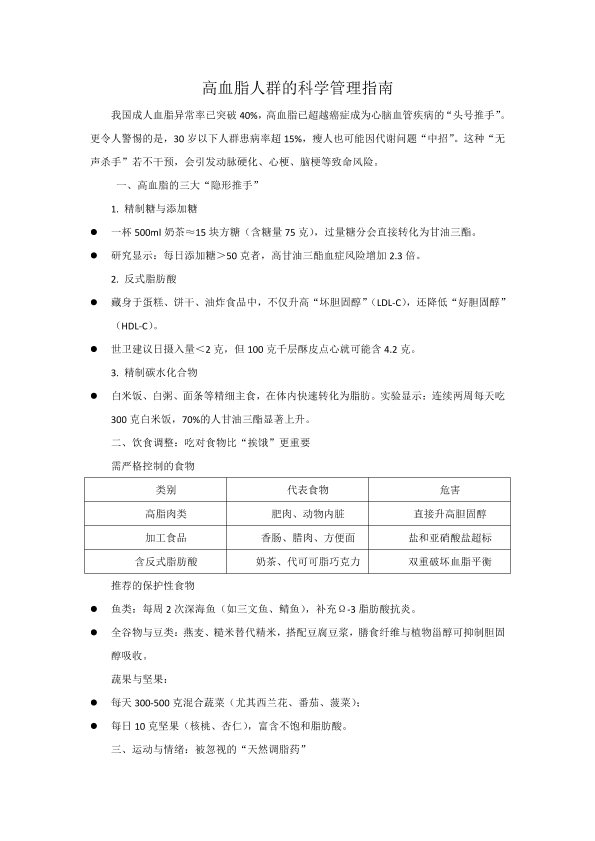 高血脂人群的科学管理指南