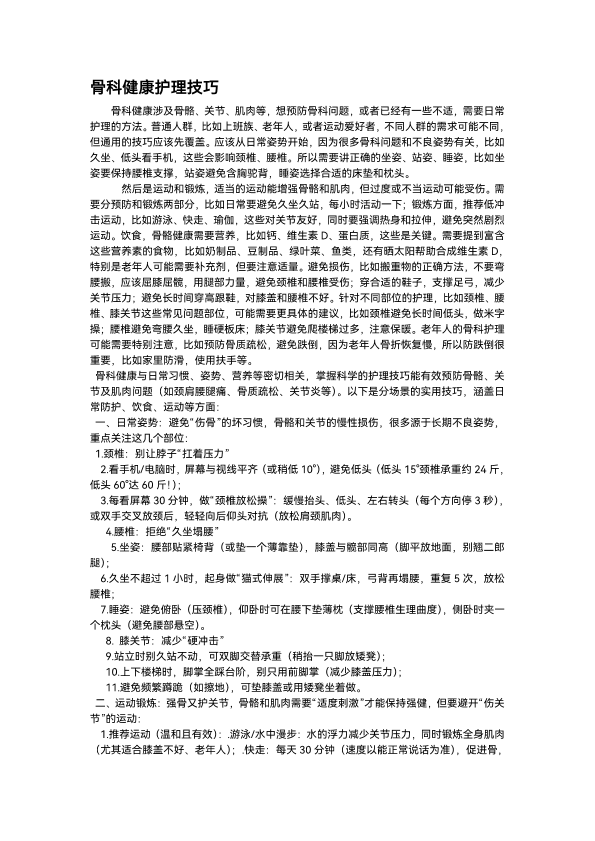 骨科健康护理技巧