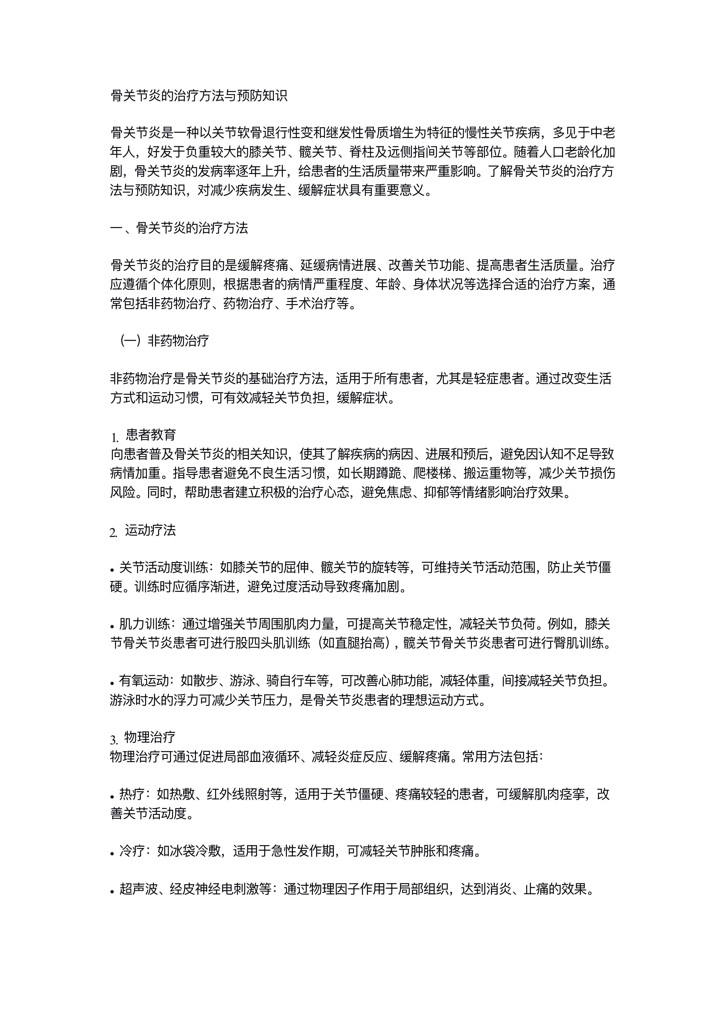 骨关节炎的治疗方法与预防知识