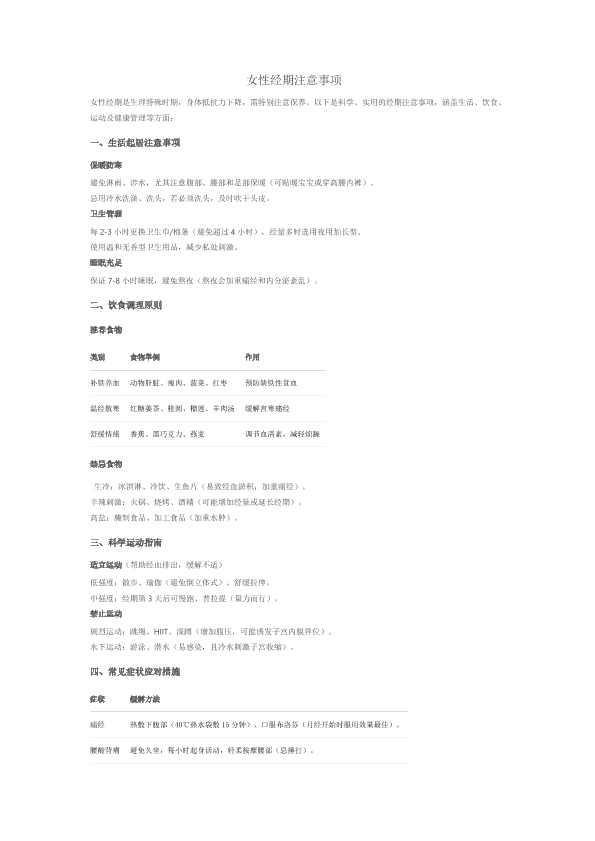 女性经期注意事项