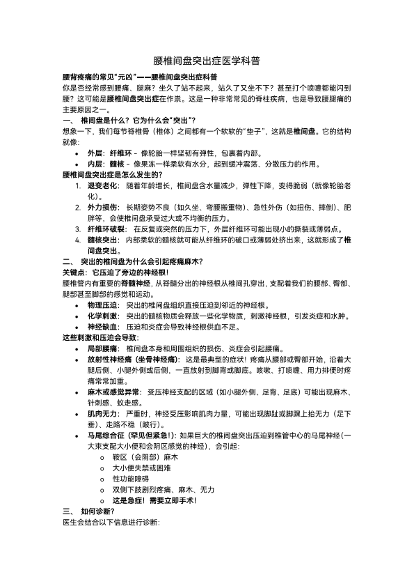 腰间盘突出科普