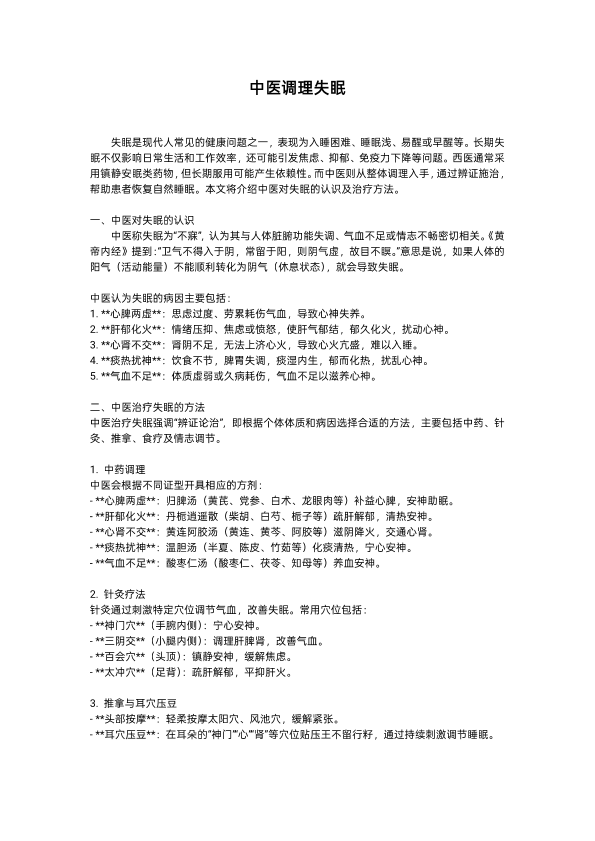 中医调理失眠