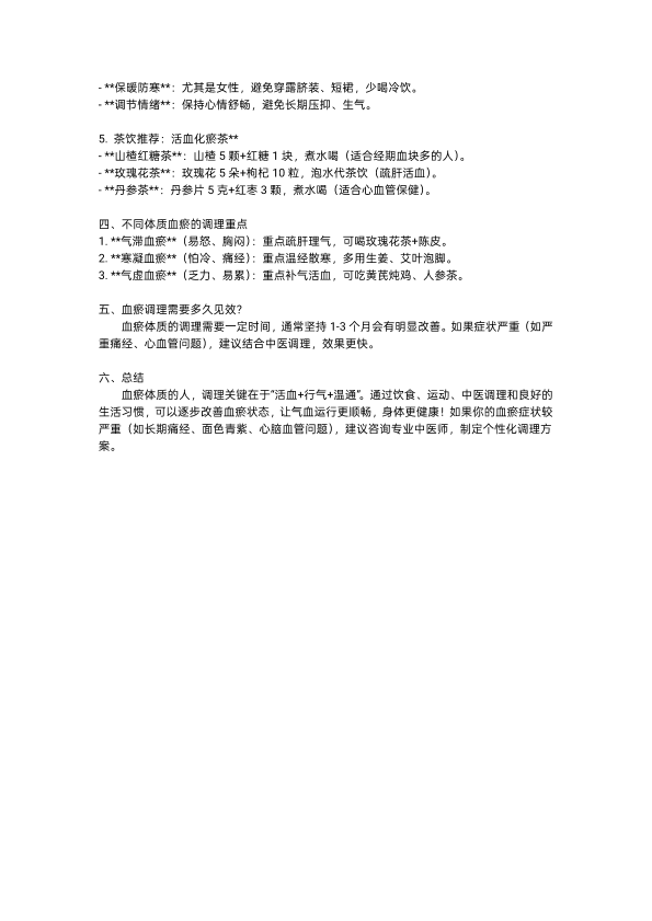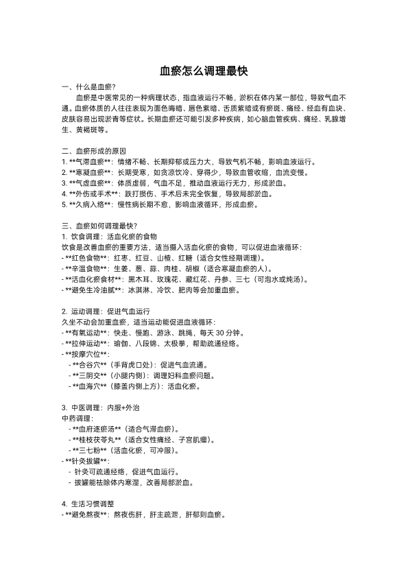 血瘀怎么调理最快