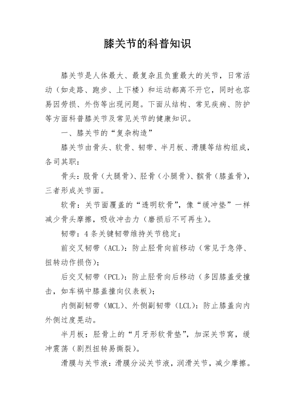 膝关节的科普知识