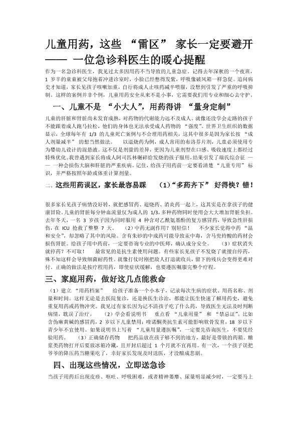 儿童用药,这些 “雷区” 家长一定要避开 ——一位急诊科医生的暖心提醒