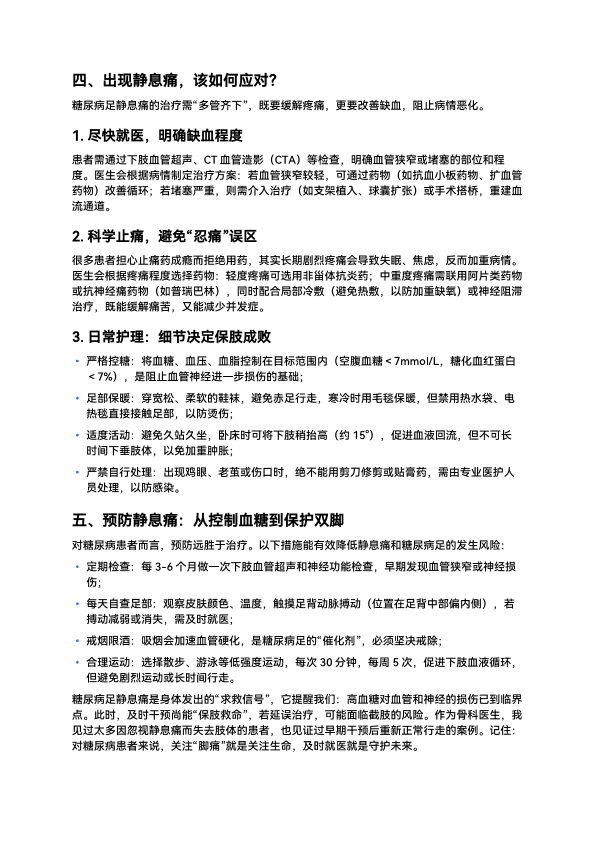 糖尿病足患者,肢体静息痛的治疗