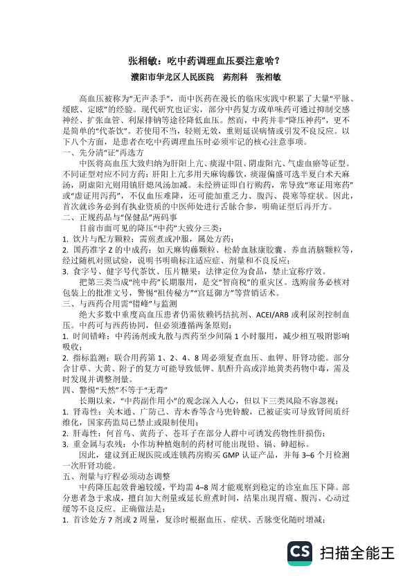 吃中药调理血压要注意啥