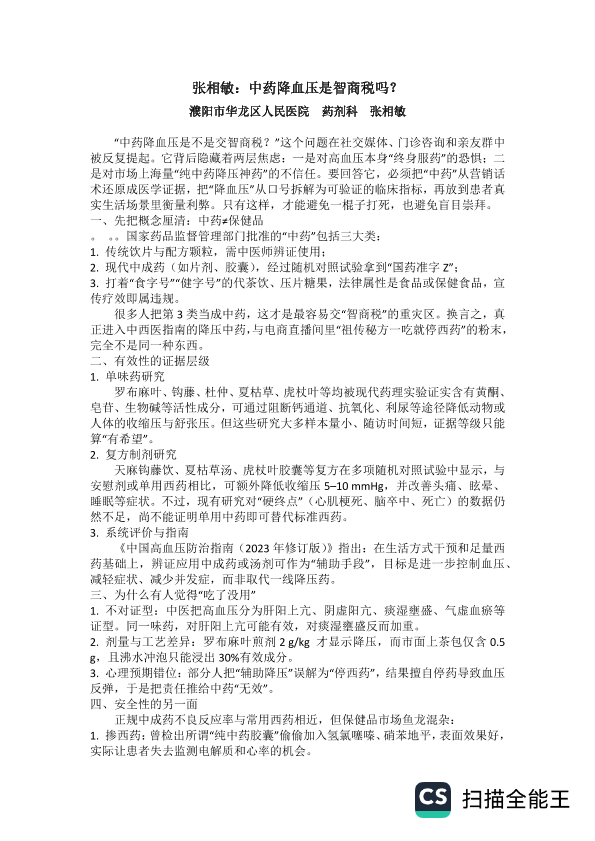 中药降压药是智商税吗