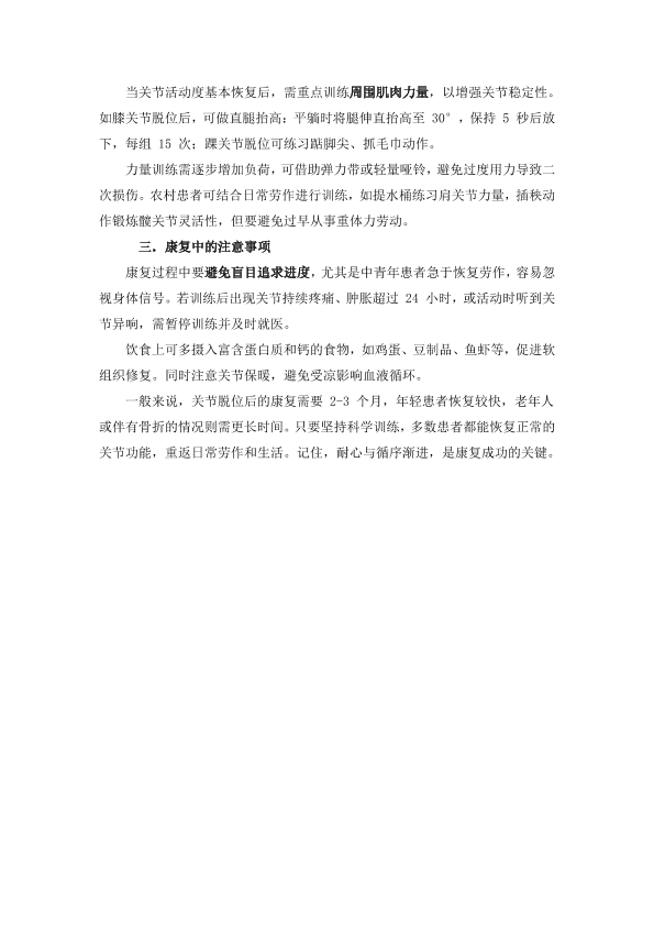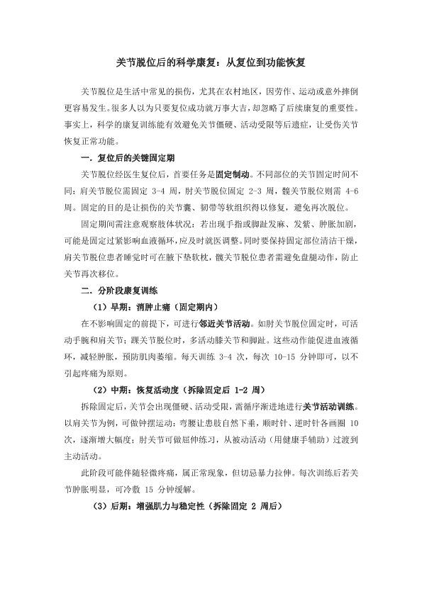关节脱位后的科学康复:从复位到功能恢复