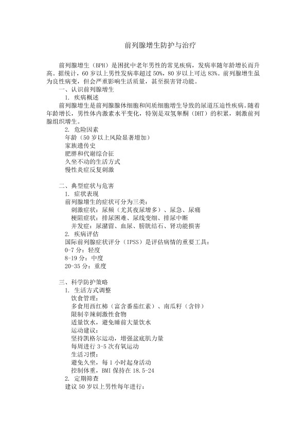 前列腺增生防护与治疗