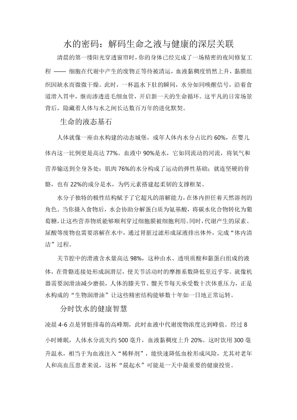 水的密码:解密生命之液与健康的深层关联