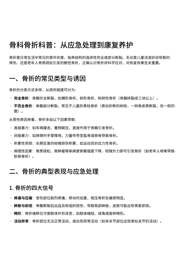 骨科骨折科普:从应急处理到康复养护